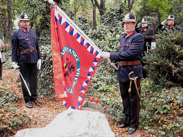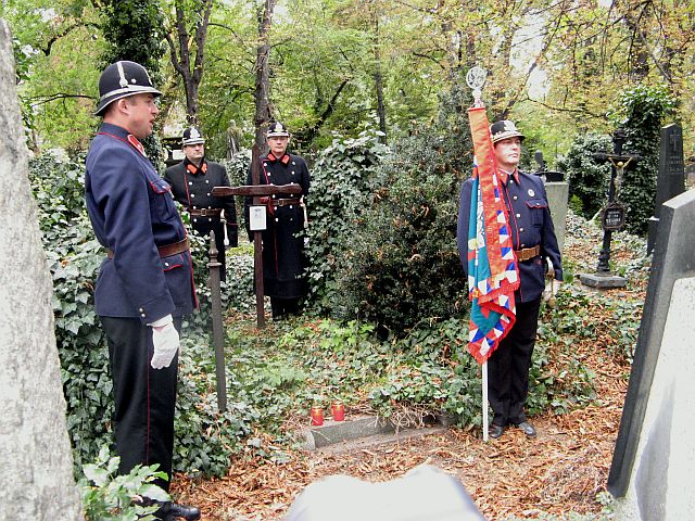 Pietní akt u hrobu stržm. Jana Klennera (Praha - Olšany)